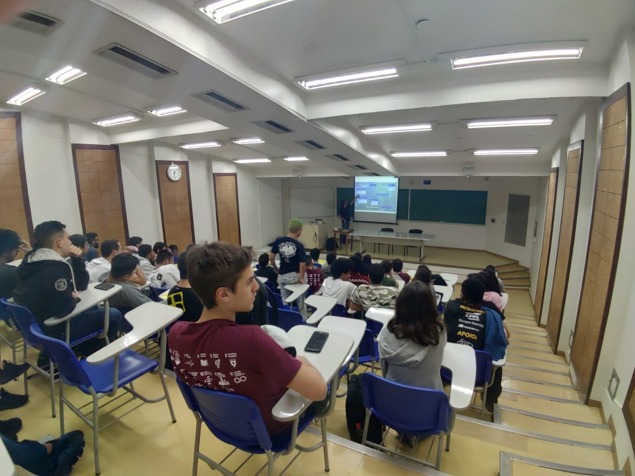 A palestra “O dia-a-dia de um projeto de sistema fotovoltaico” teve como objetivo trazer de uma forma tangível aos alunos o que acontece em uma equipe de engenharia seja no escritório, seja em campo.